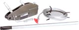 3、安装手柄:手柄仅在工作时才需要安装,拧下绞盘左外侧的外露螺母,将手柄螺孔端顺时针旋入外露螺杆,再将螺母拧紧。